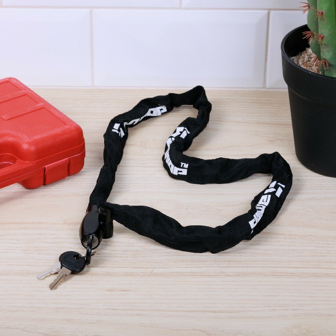 | Минусы: | Коротковата цепь. к бетонному столбу линии электропередач например или к среднему небольшому дереву не пристегнешь. |
