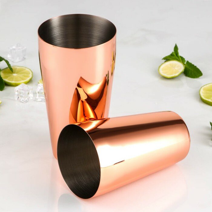 Бостонский шейкер, 750+550 мл, 9x9x26,5 см, 304 сталь, цвет медный интересное: