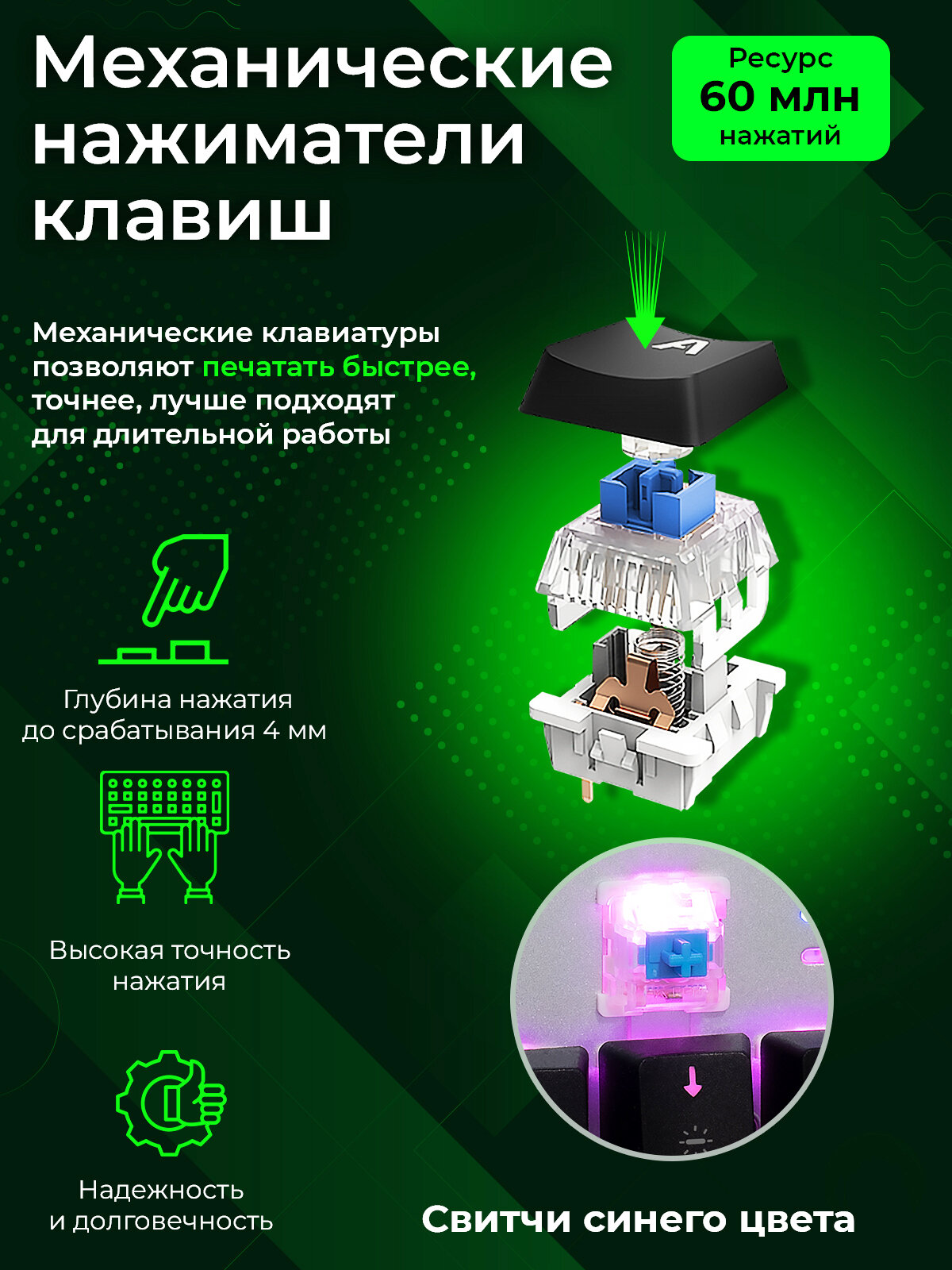 | Ход клавиш | 4 мм |