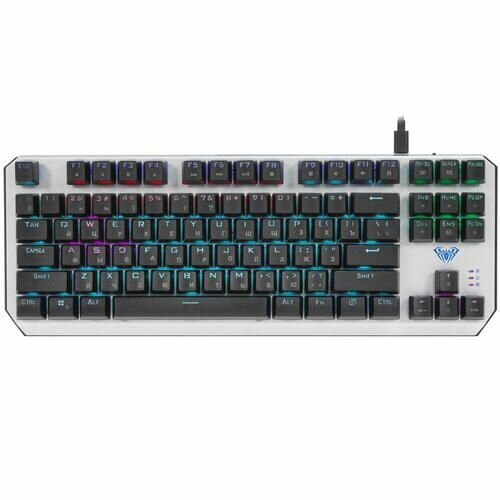 Клавиатура механическая AULA F2067, укороченная, алюм./пластик, разноцветная, радужная подсветка, кабель 1,6м, USB, 87 кн