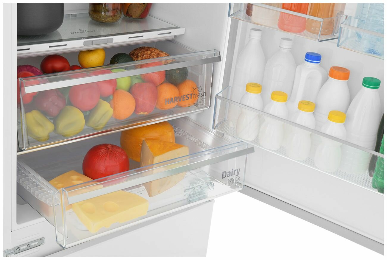 | Дополнительная информация | тип ручки: встроенная, технология 3-х цветов HarvestFresh, полки: 4 шт, хромированная полка для бутылок, дверные полки: 4 шт; количество ящиков в морозильной камере: 3 шт; подставка для яиц: 1x6, форма для кубиков льда |