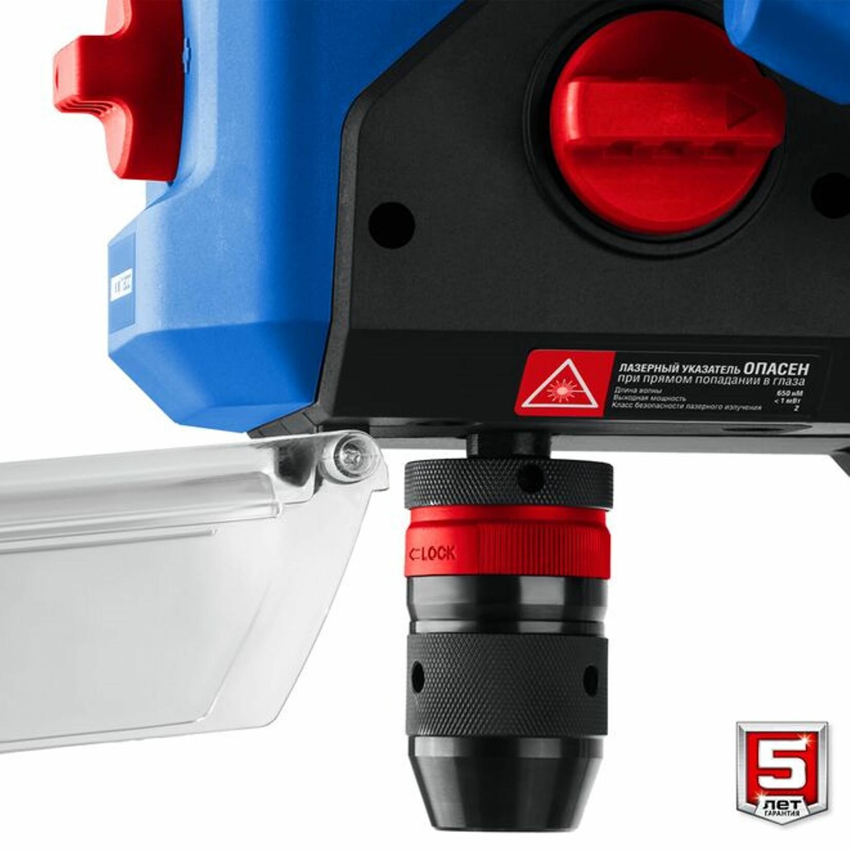 | Минусы: | К порядку включения режимов нужно привыкнуть, лазер по одной оси ошибается на 1,5 мм, на ось рукоятки поставить пришлось тонкую втулку. Верхняя пластиковая заглушка трубы не очень надёжно крепиться (при перевозке можно потерять) . Биение сверла хоть незначительно но есть. На ручку переключения скоростей нужно нанести,для удобства,символ скорости, я просто на малярном скотче написал. |