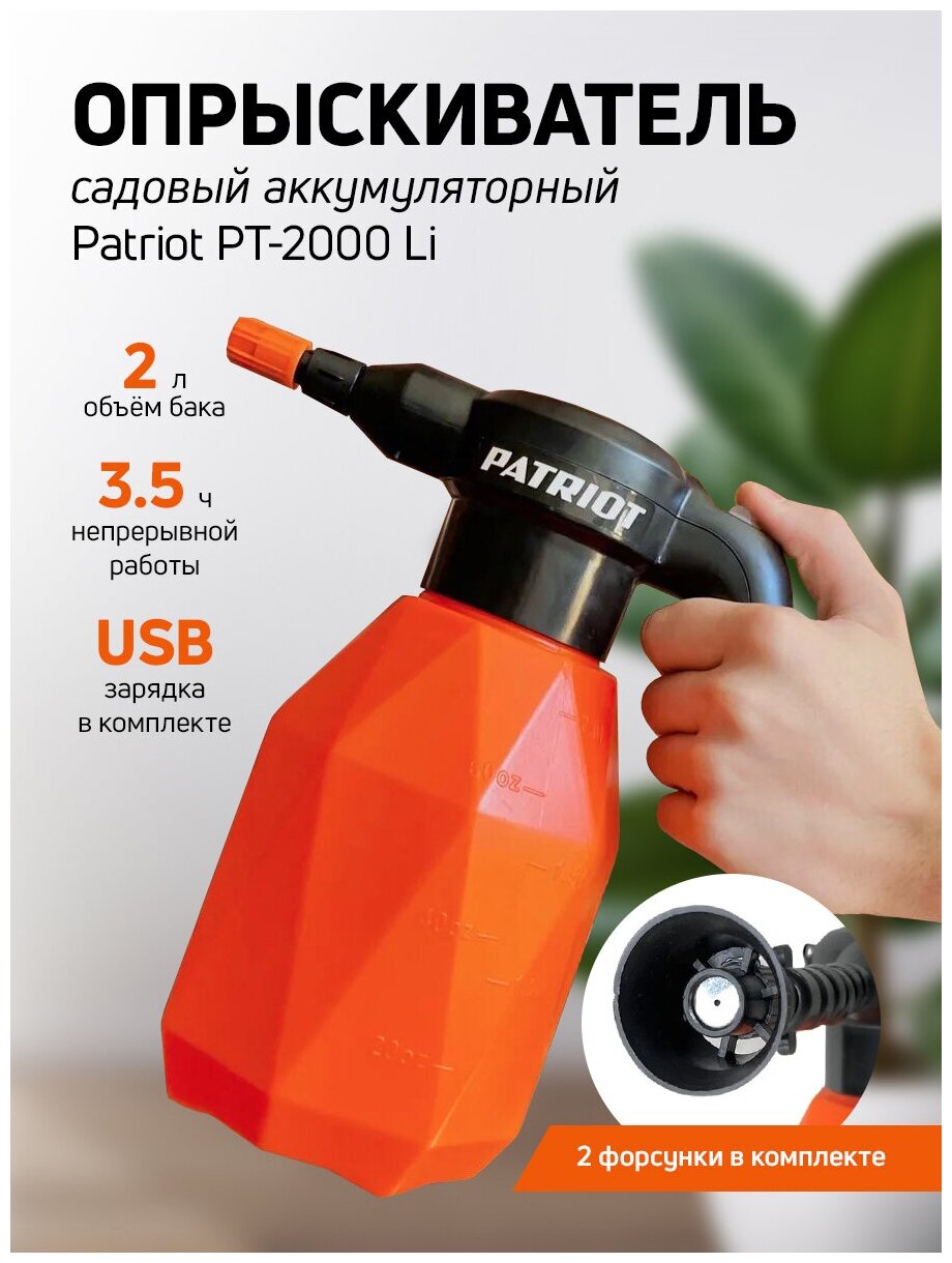 Распылитель аккумуляторный PATRIOT PT-2000Li / опрыскиватель-пульверизатор садовый / емкость с пульверизатором для цветов / ручной / для растений интересное: