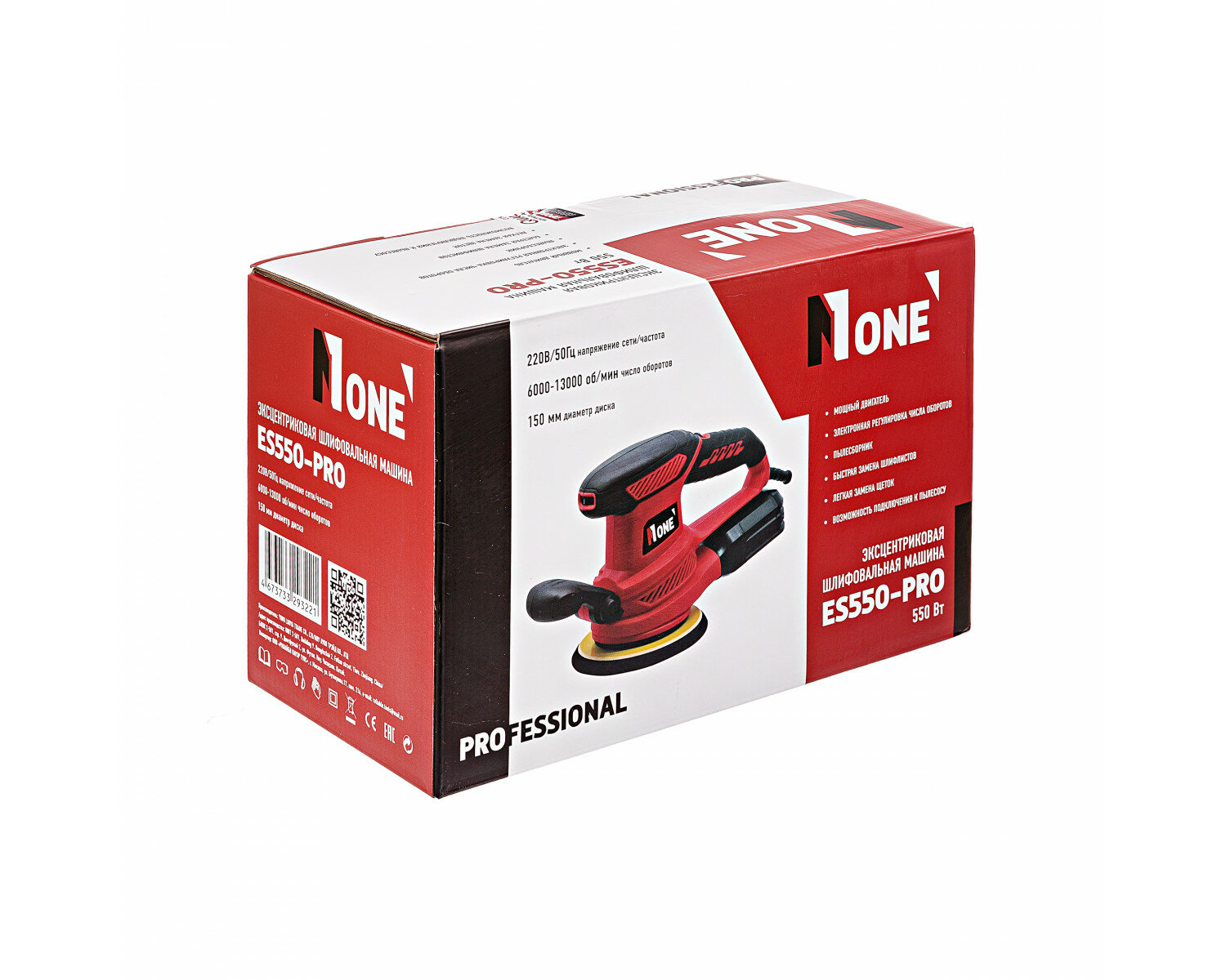 Эксцентриковая шлифовальная машина NUMBER ONE ES550-PRO 150мм, рег. оборотов 6000-13000об/мин, 550Вт.