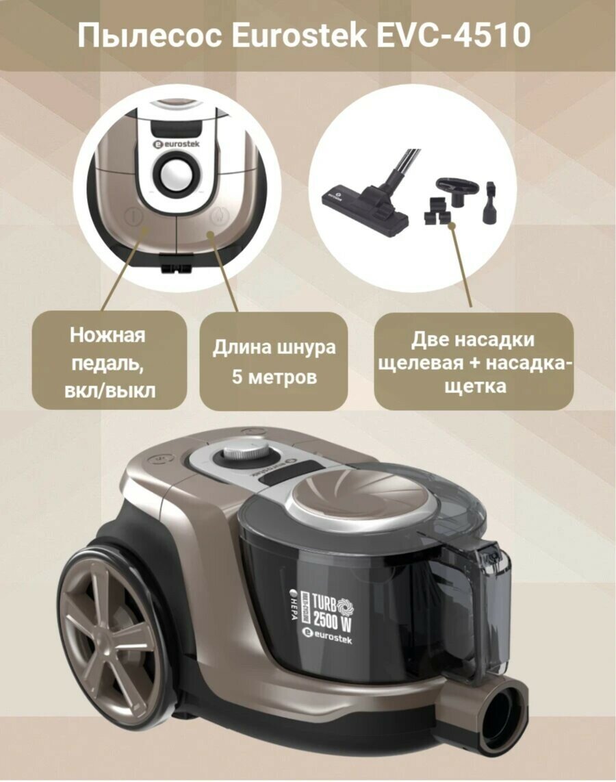 Пылесос Eurostek EVC-4510 (Циклон, 2500/420 Вт, Бежевый)