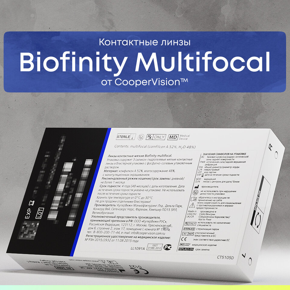 Сохранить"Мультифокальные линзы CooperVision Biofinity multifocal (3 линзы) Аддидация +2.00D -9.50 R 8.6, ежемесячные, прозрачные" интересное:
