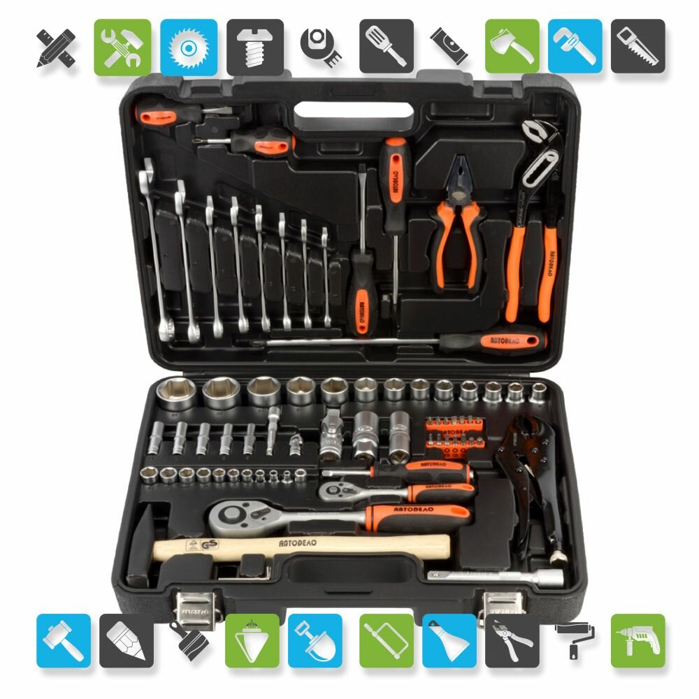 Набор инструментов Автодело, под размеры 1/2" и 1/4", комплект 72 предмета, арт. 39872