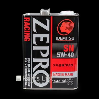 Масло моторное IDEMITSU Zepro Racing 5w40 синтетическое, SN, ACEA A3, для бензинового двигателя, 4л