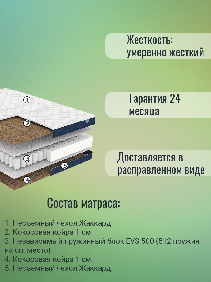 | Отзыв: | Жесткость одинаковая, поэтому и купила его – средняя, спать удобно, не проваливаешься, но и тело не болит. Спать нравится на нем)) неприятных запахов не было. распаковали сразу после получения. |