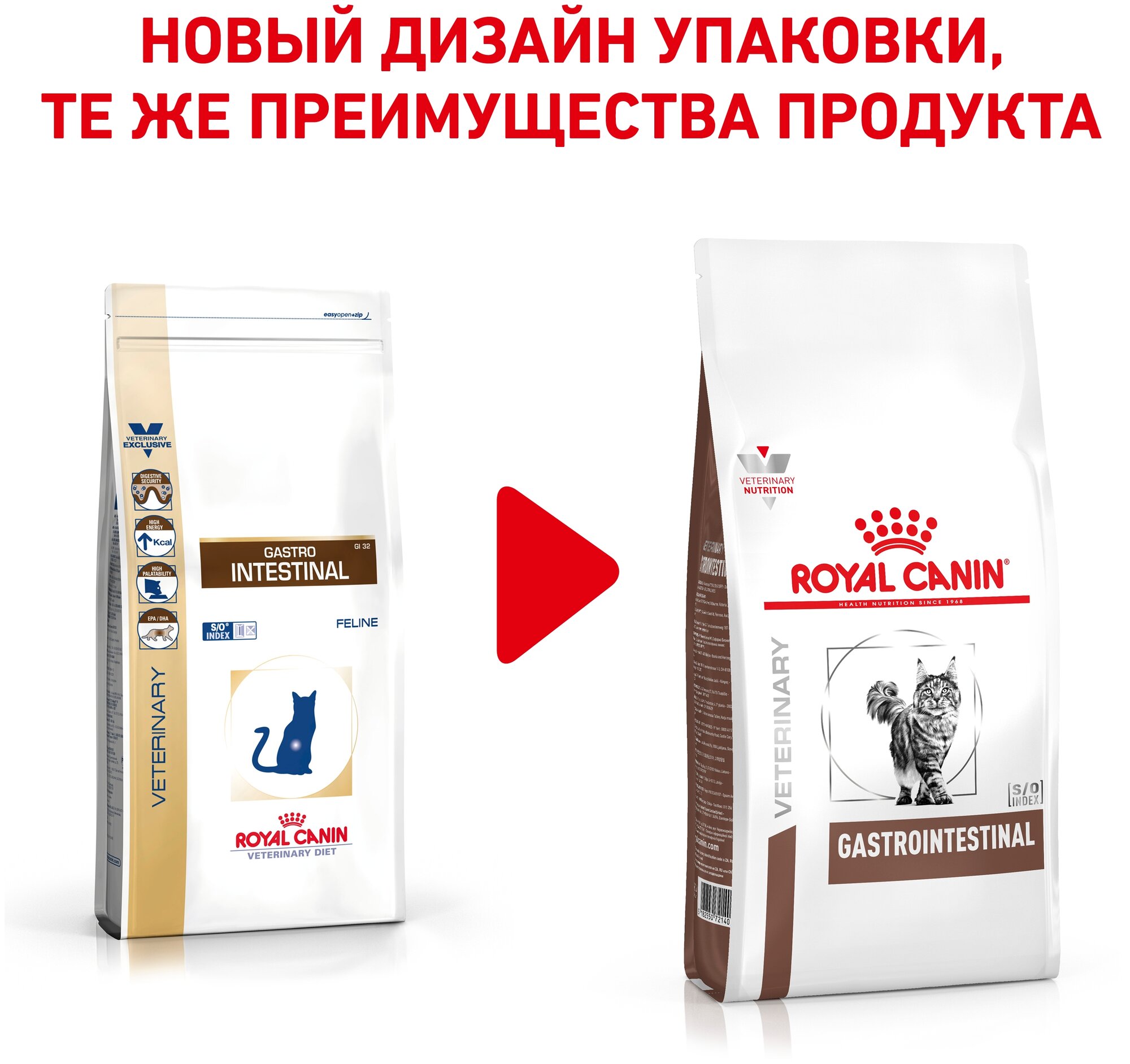 ROYAL CANIN GASTROINTESTINAL для взрослых кошек при заболеваниях желудочно-кишечного тракта (2 + 2 кг)