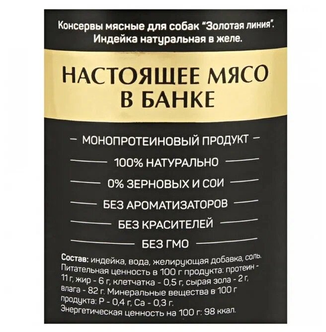 Четвероногий Гурман Golden line консервированный корм с индейкой натуральной в желе для взрослых собак - 100 г (24 шт)