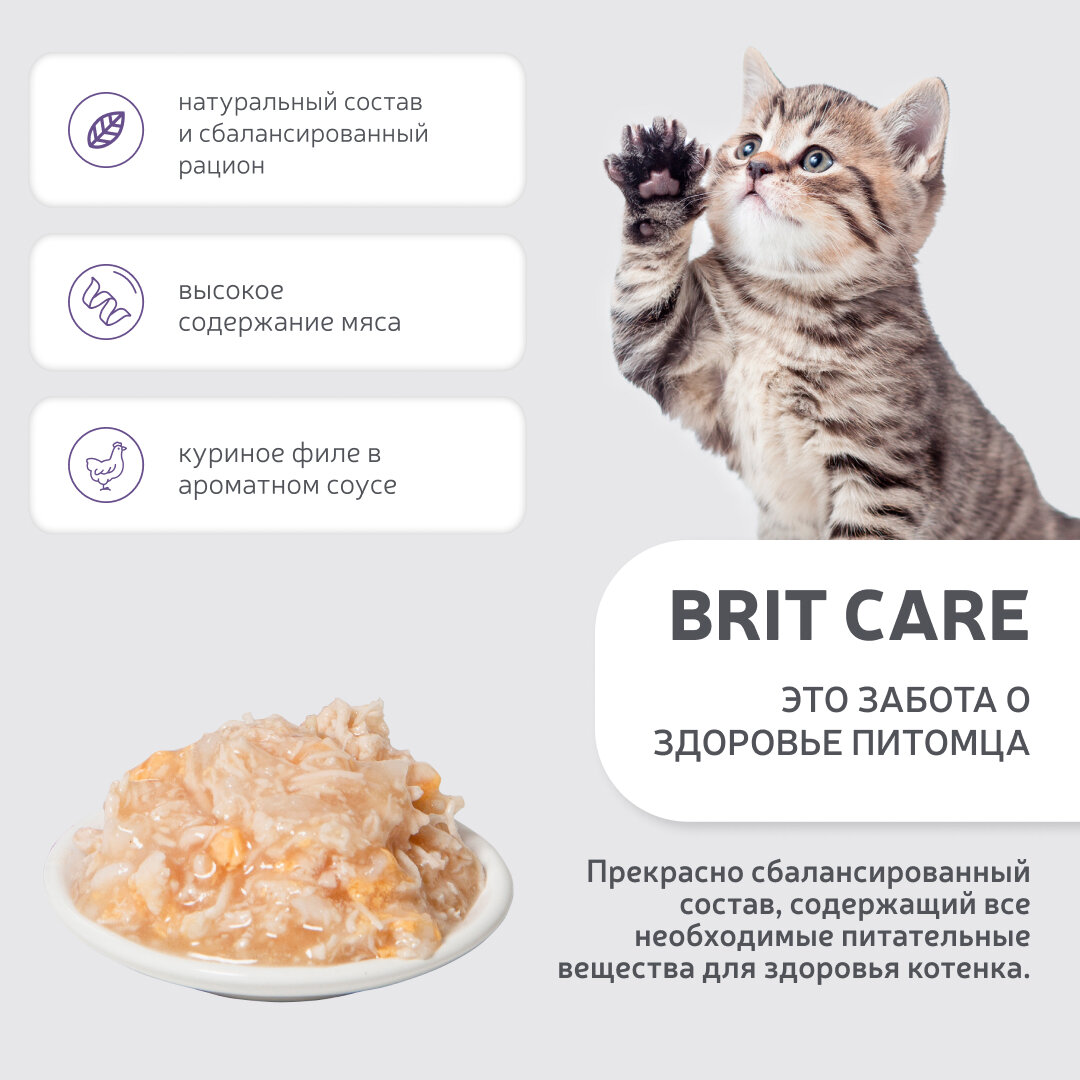 Влажный корм для котят Brit Care, с курицей, с сыром 12 шт. х 80 г (кусочки в соусе)