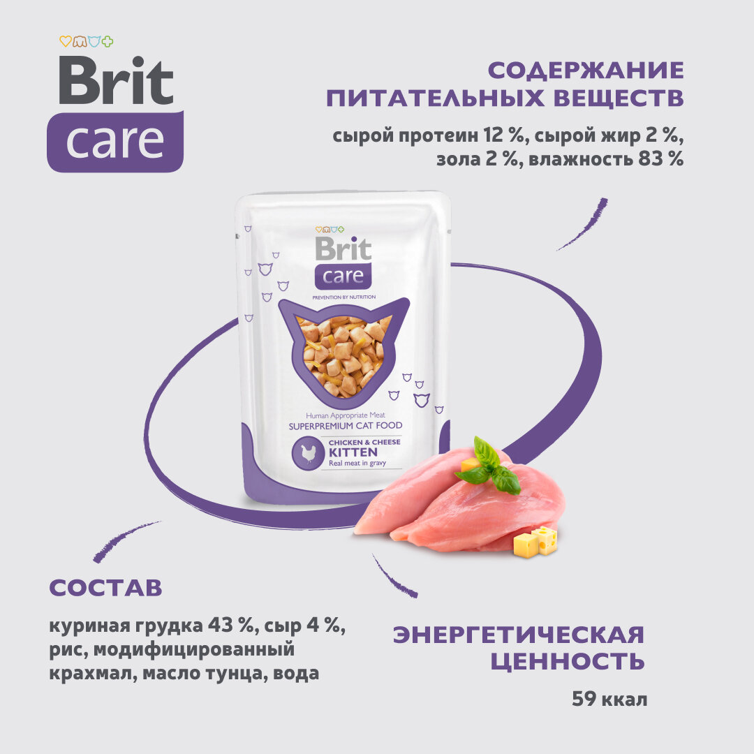Brit Паучи для котят Care с курицей и сыром (Chicken Cheese Kitten) 100122 | Chicken Cheese Kitten, 0,08 кг, 38515 (2 шт)