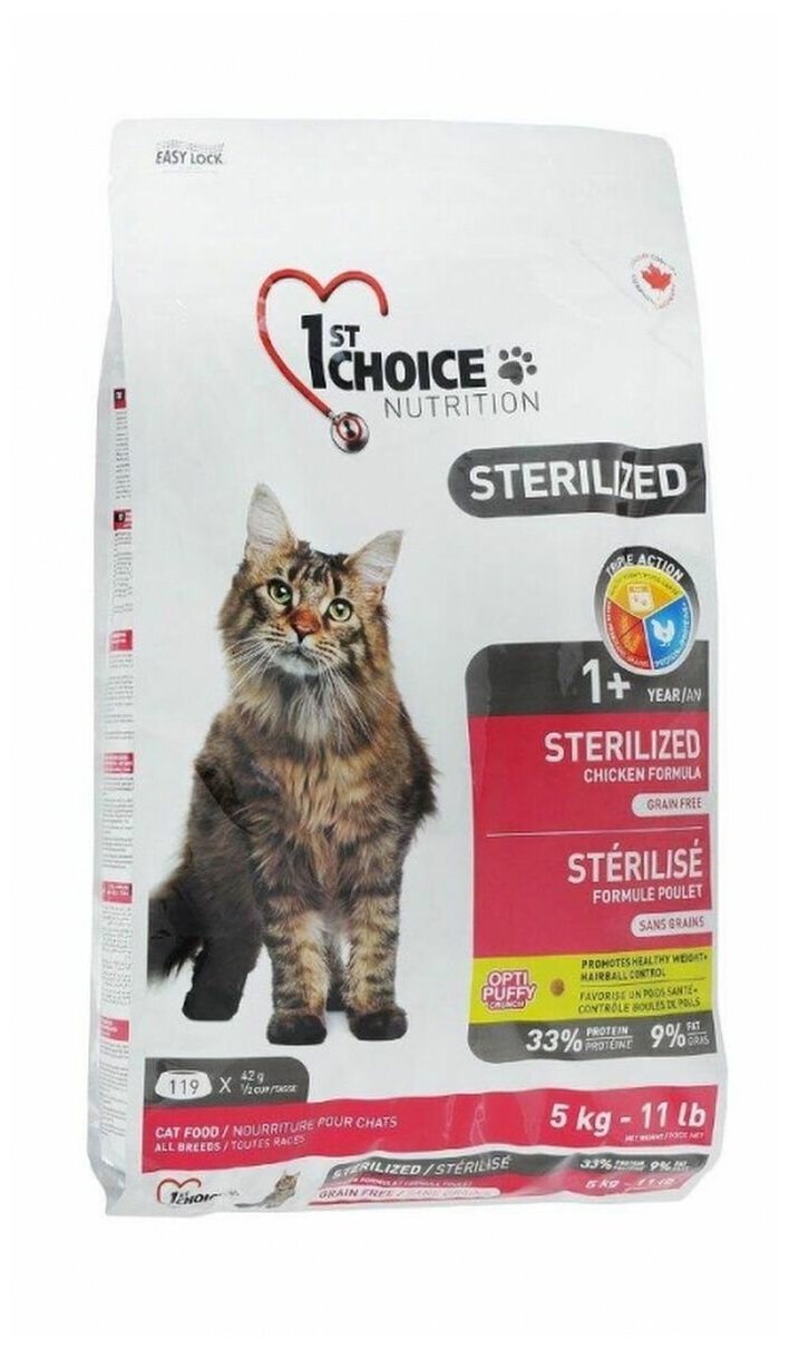 1St Choice Sterilized - Корм для стерилизованных кошек, беззерновой, с курицей (5 кг)