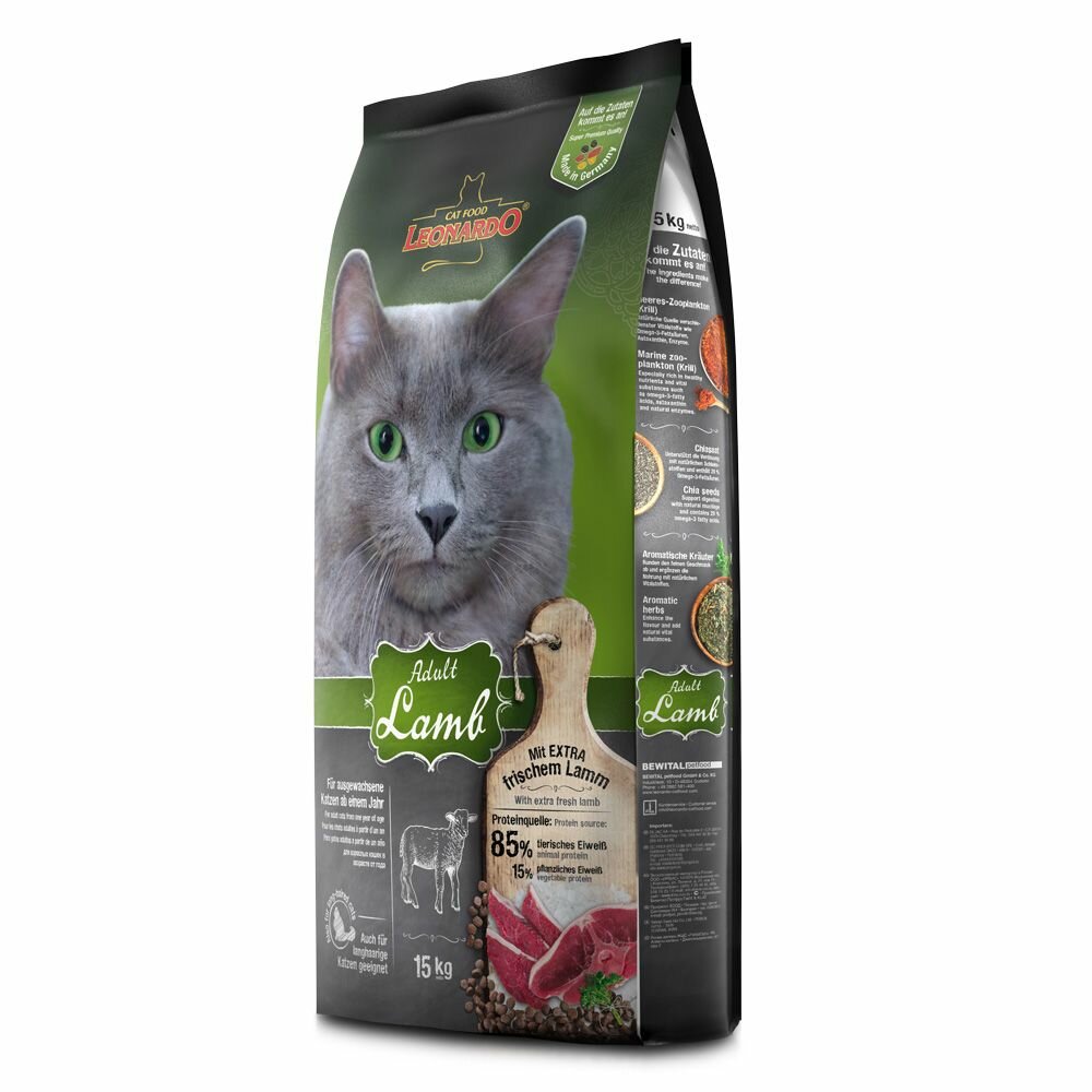 Leonardo корм для взрослых кошек всех пород, ягненок с рисом 15 кг