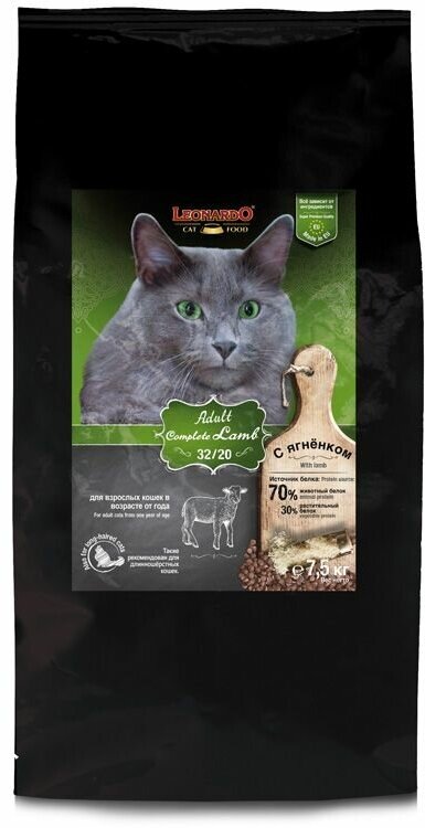 Leonardo корм для взрослых кошек всех пород, ягненок с рисом 7,5 кг
