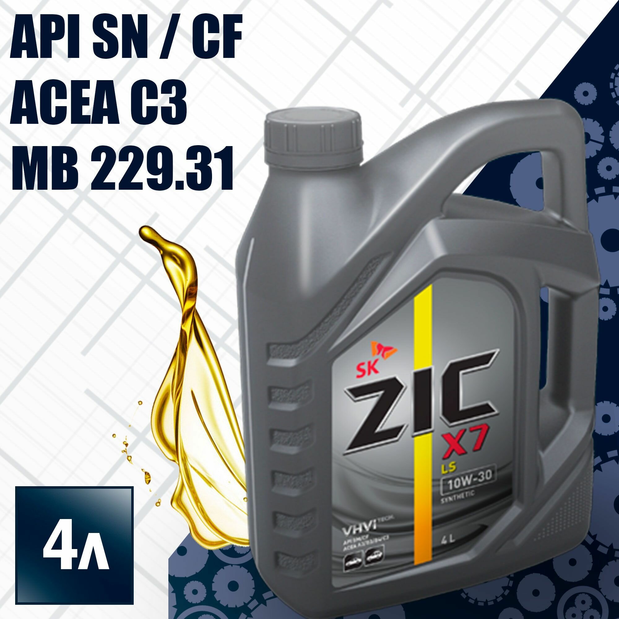 Масло моторное ZIC X7 LS 10w30 синтетическое, SN/CF, ACEA C3, универсальное, 4л, арт. 162649