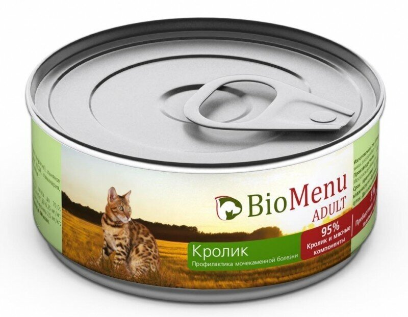 Корм влажный BioMenu Adult паштет кролик для взрослых кошек для профилактики МКБ (24шт x 100 г)