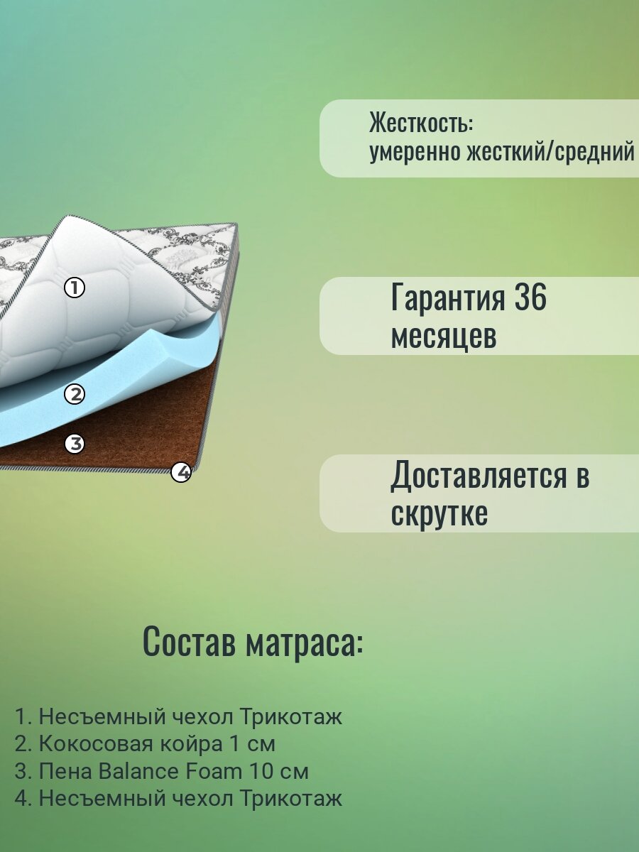 | Наполнитель | комбинированный (пенополиуретан + кокосовая койра) |