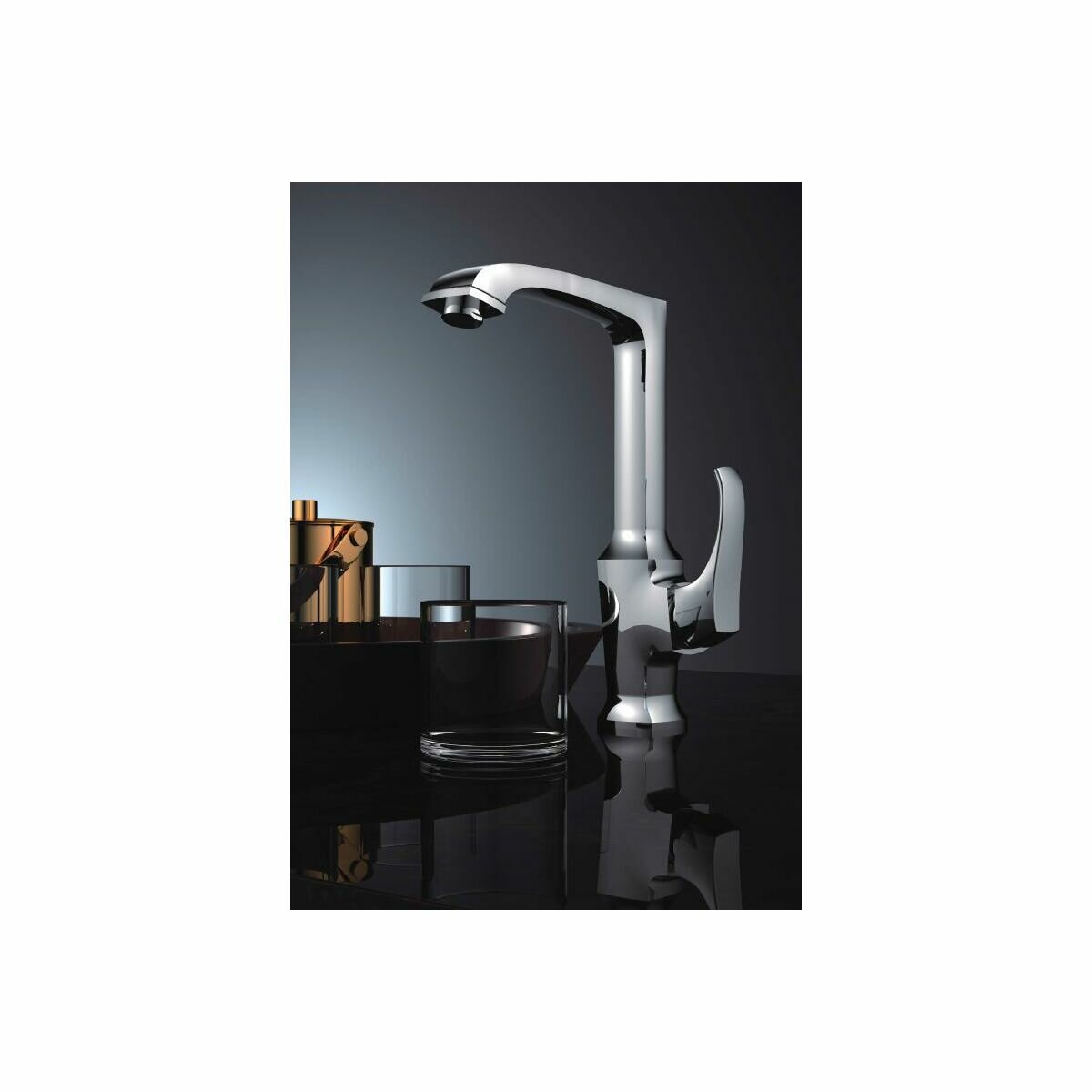 Высокий однорычажный смеситель для кухонной мойки Ledeme L4042 хром, латунь