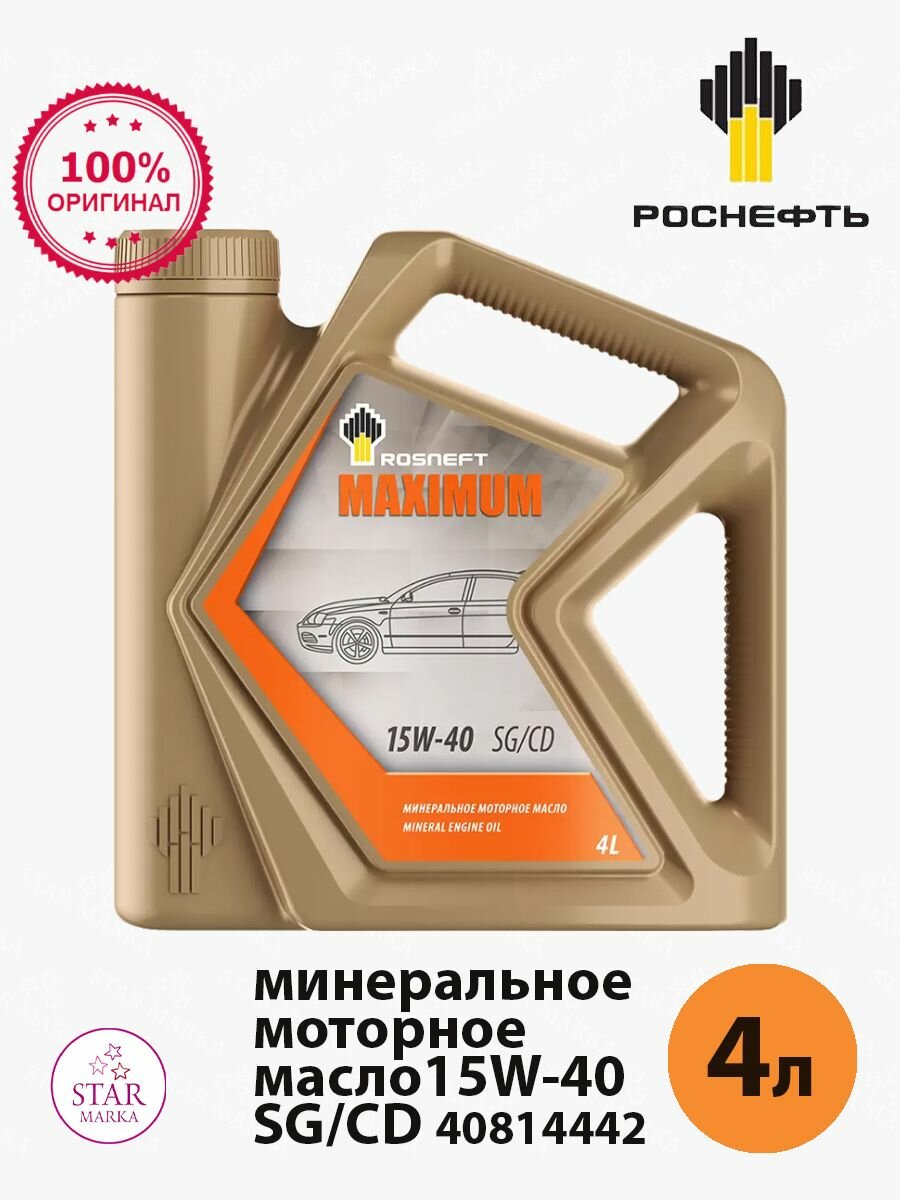 Rosneft Роснефть Maximum 15w-40 (Рнпк) Sg/Cd Моторное Масло Минер. Кан. 4 Л