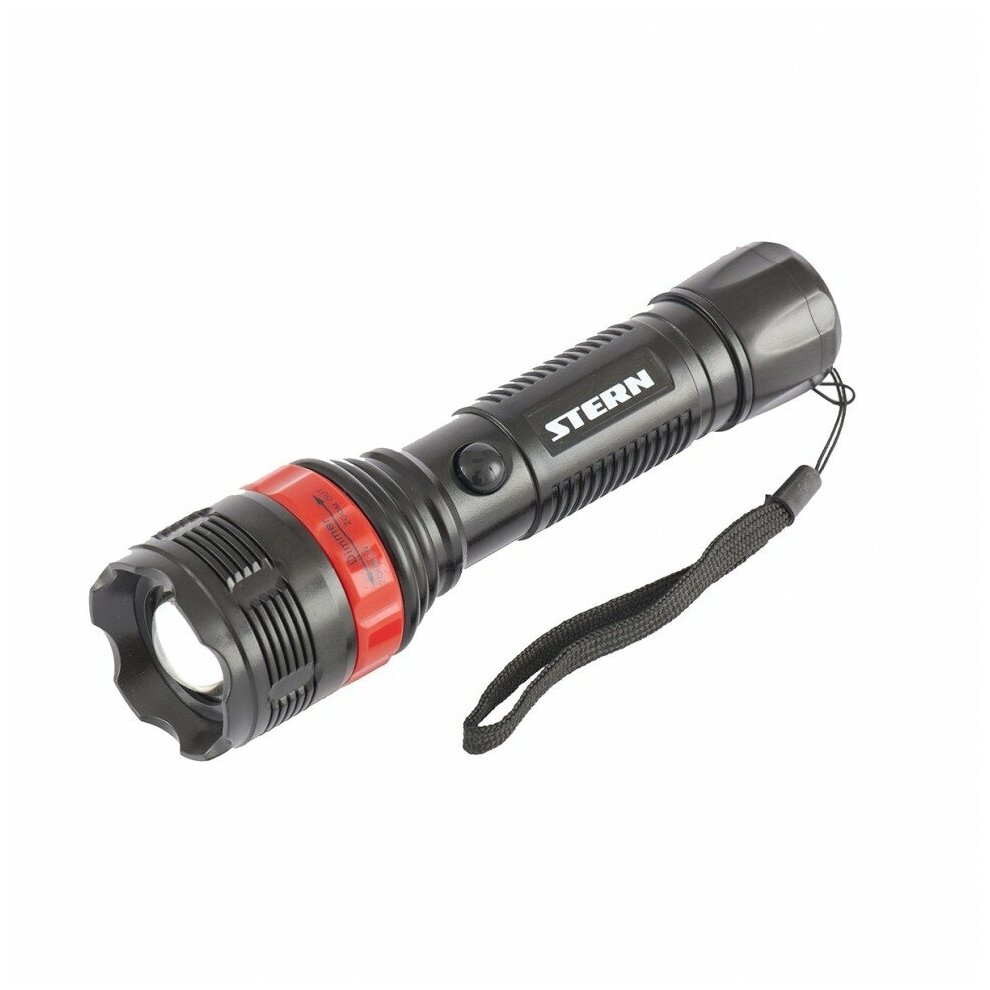 Фонарь бытовой, пластик, 3 W Led, ремешок, зум, 3 режима 100%-50%-строб, 3 х ААА Stern 90572