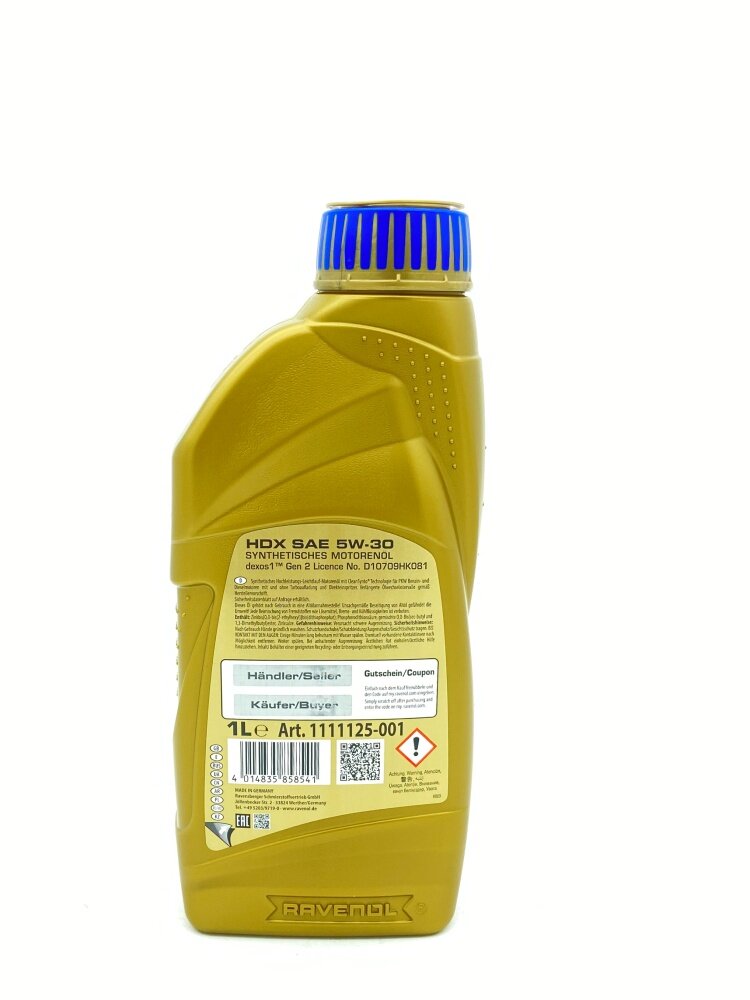 Масло моторн. Ravenol 4014835858541 /111112500101999/ hdx sae 5w30 (1 l) cинтетич. cleansynto® opel/gm dexos1™ gen 2 (лицензия d10709hk081)/api sn:rc api sn plus/ilsac gf-5 / Ravenol 4014835858541