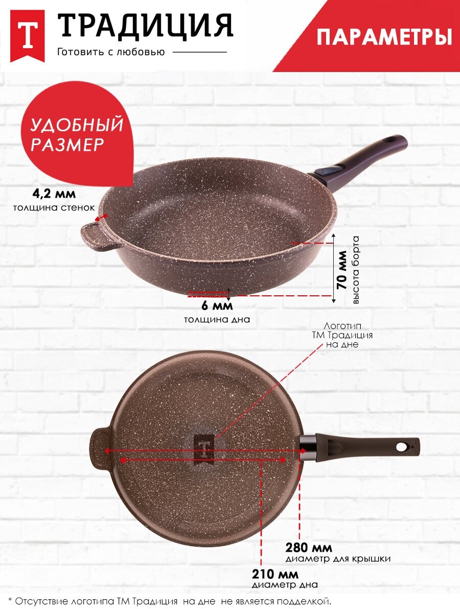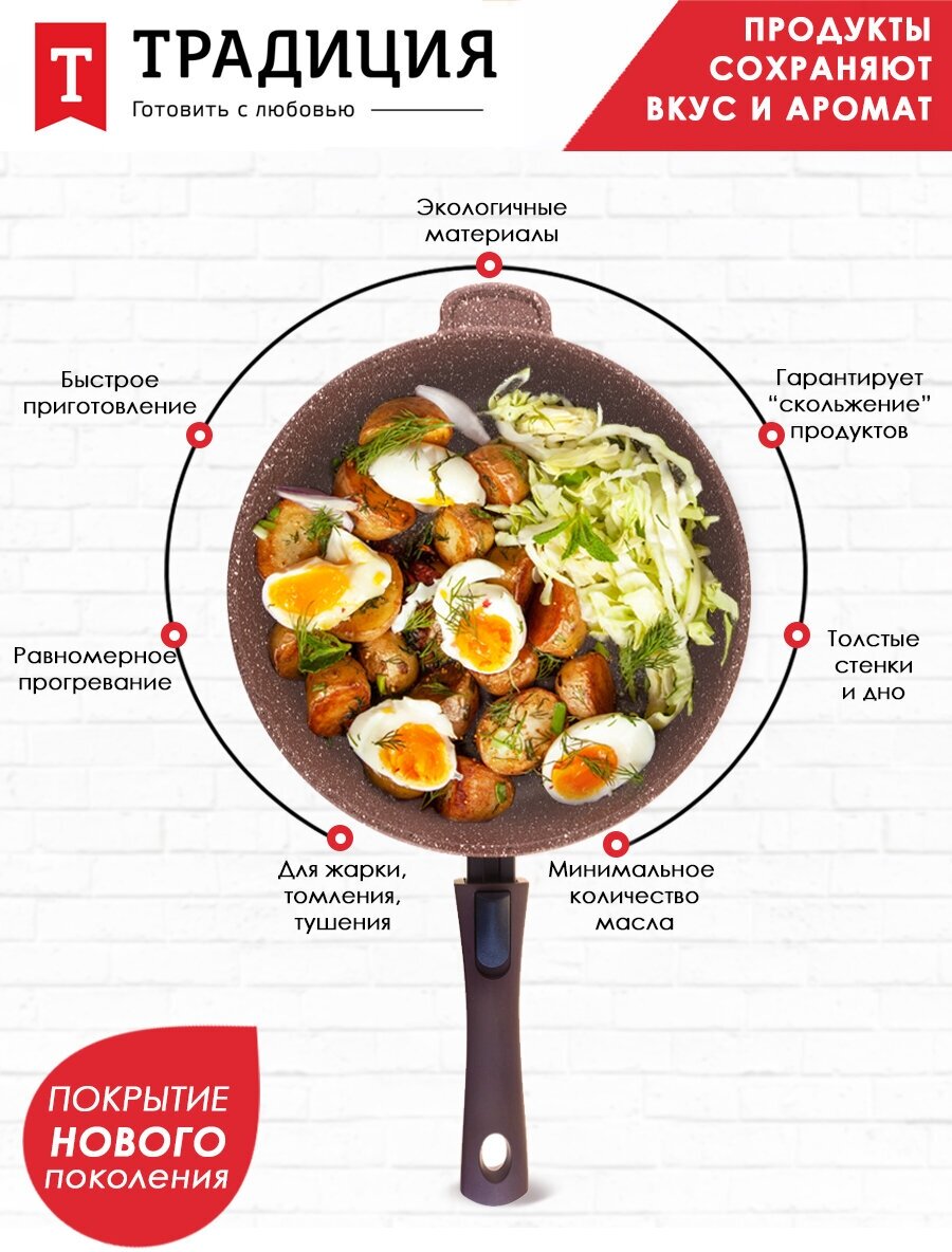 Сковорода Традиция Доломит ТД2285, 28 см, съемная ручка