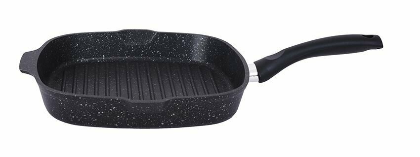 Сковорода-гриль квадратная 260х260мм с ручкой, АП (темный мрамор)