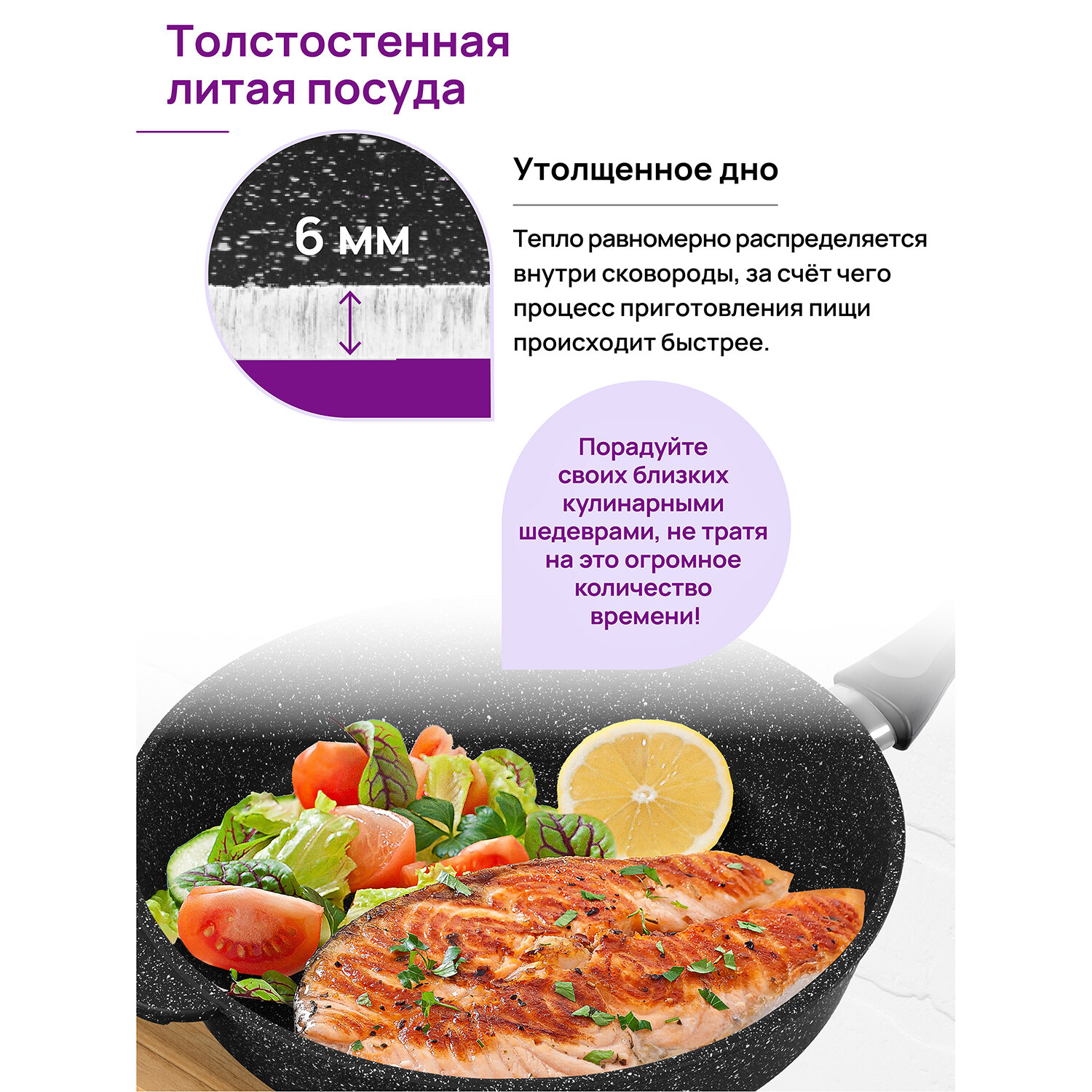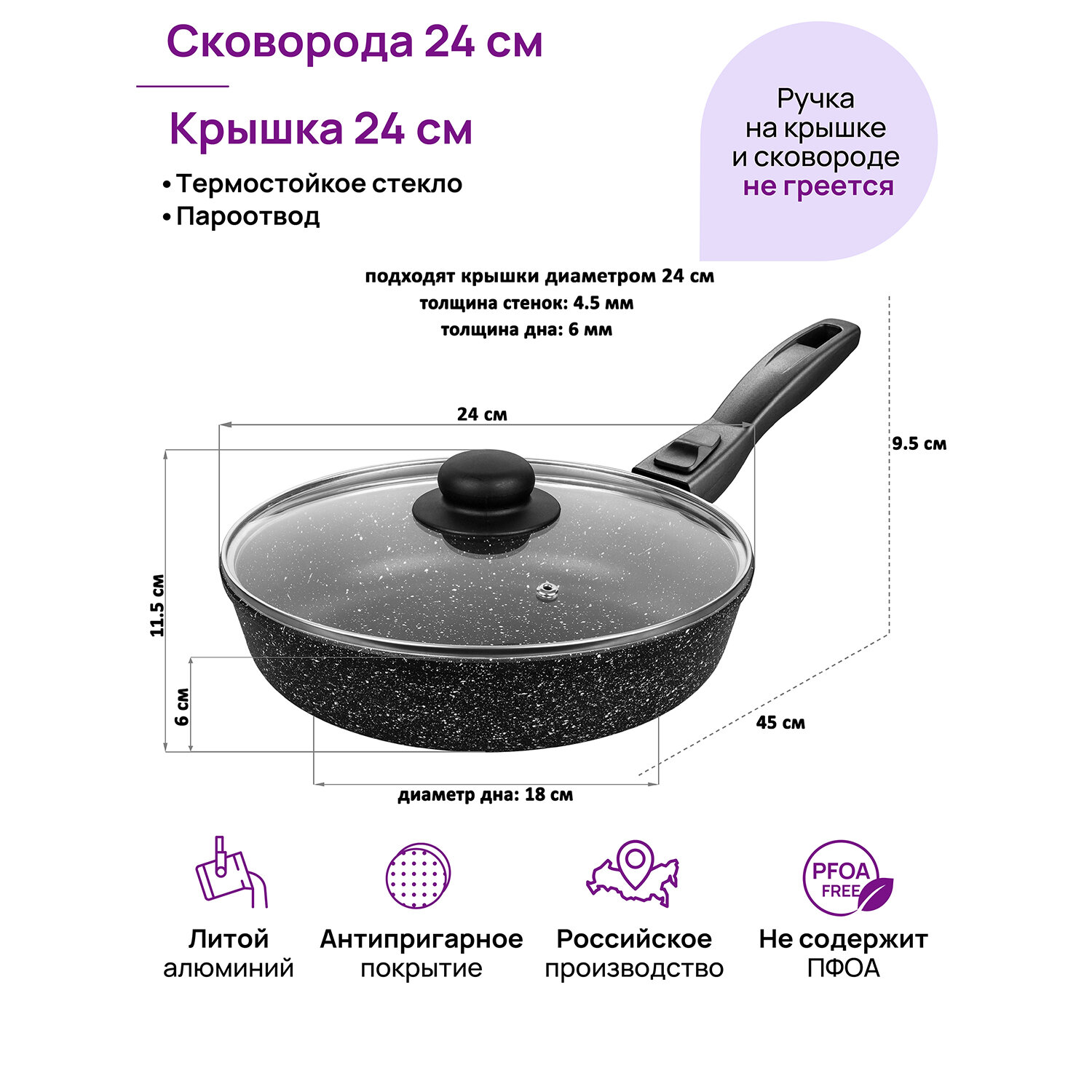 Сковорода глубокая 24 см гармония вкуса "Черный мрамор" С крышкой ф24, с/р, 45*25*11,5 см интересное: