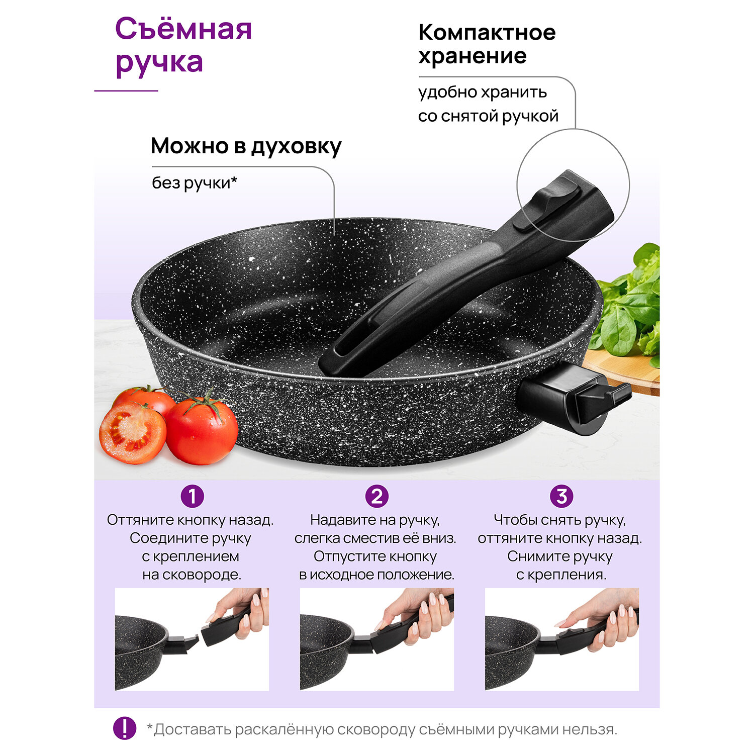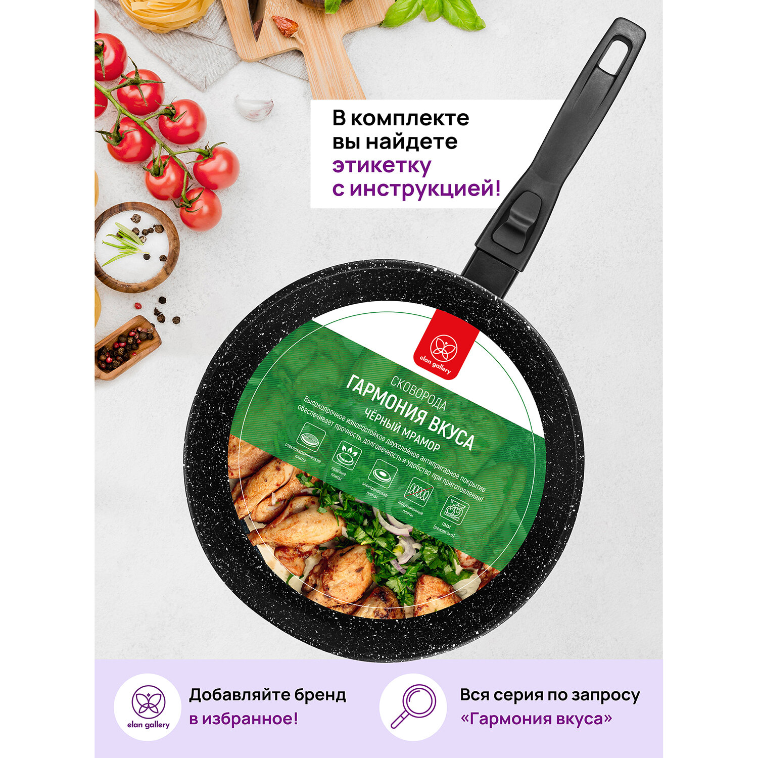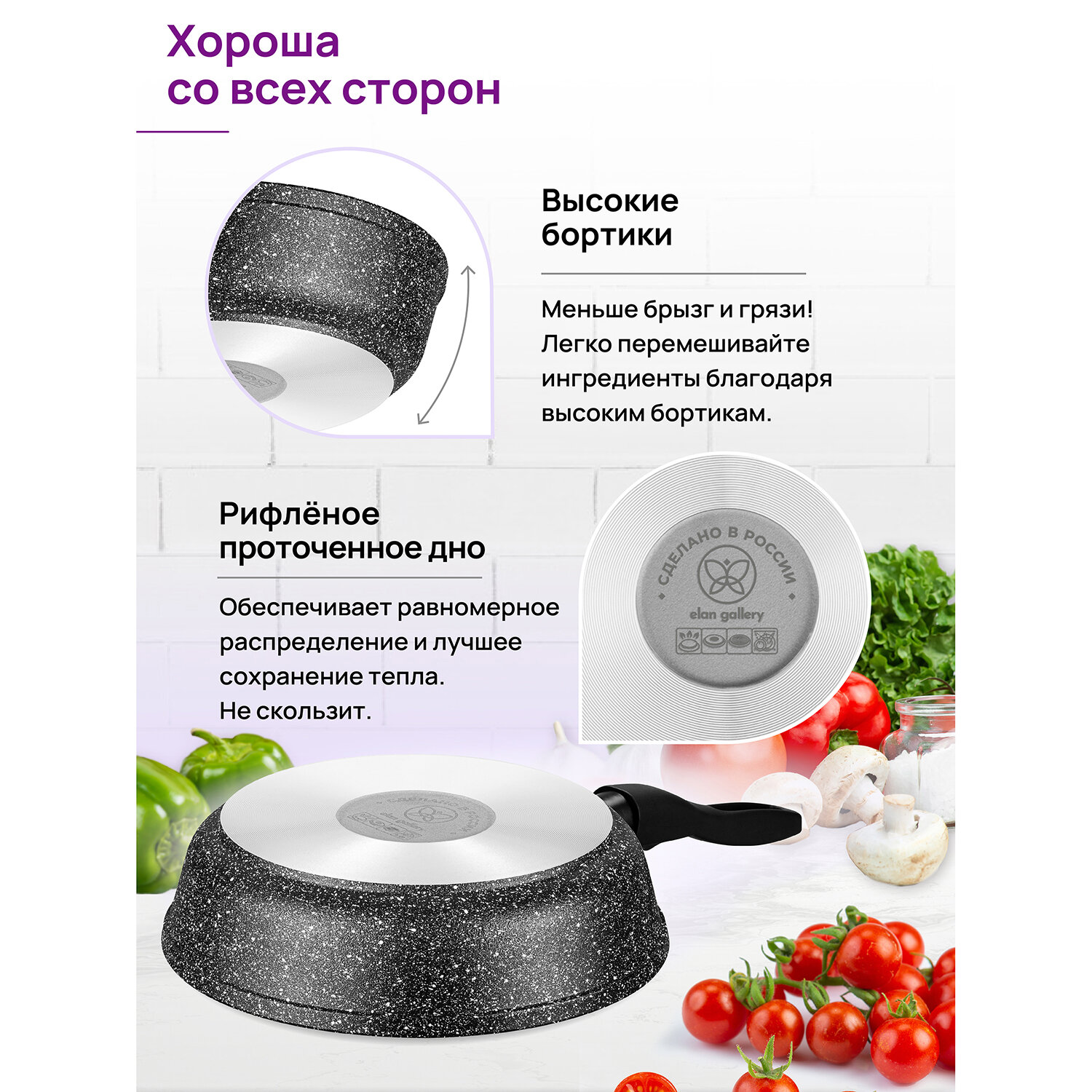 Сковорода глубокая 24 см Elan Gallery гармония вкуса Черный мрамор с крышкой D24, съёмная ручка