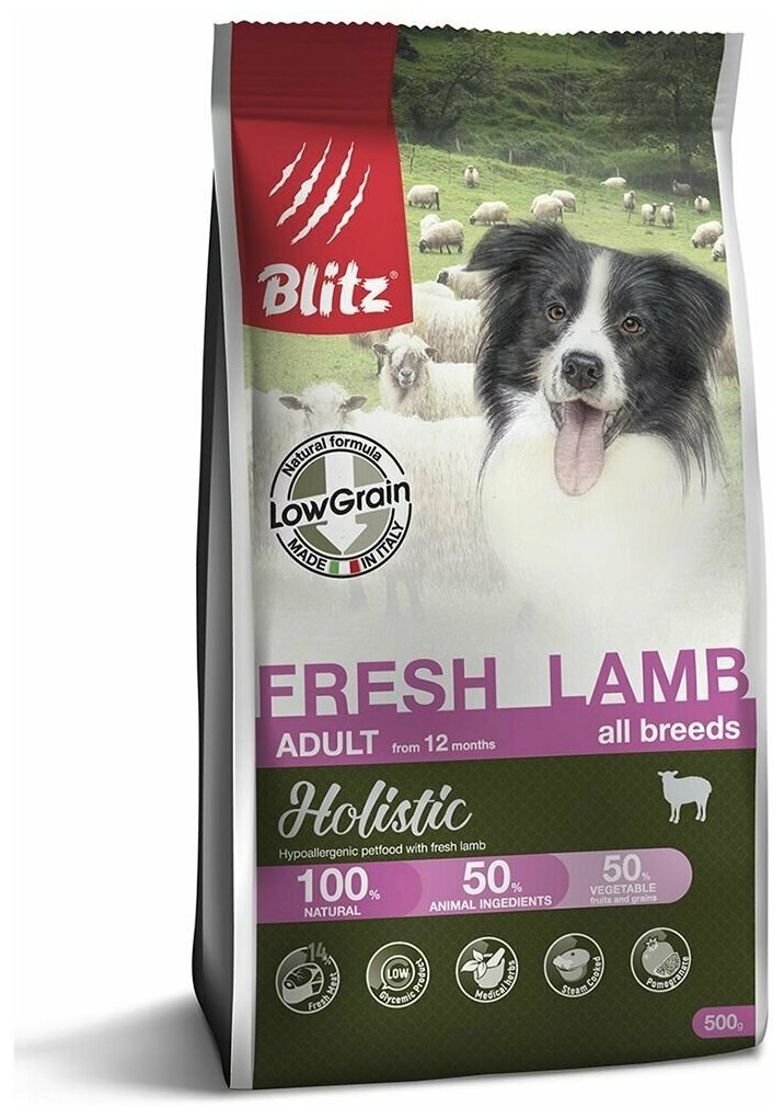 BLITZ HOLISTIC LOW-GRAIN ADULT FRESH LAMB низкозерновой для взрослых собак всех пород с ягненком (0,5 кг)