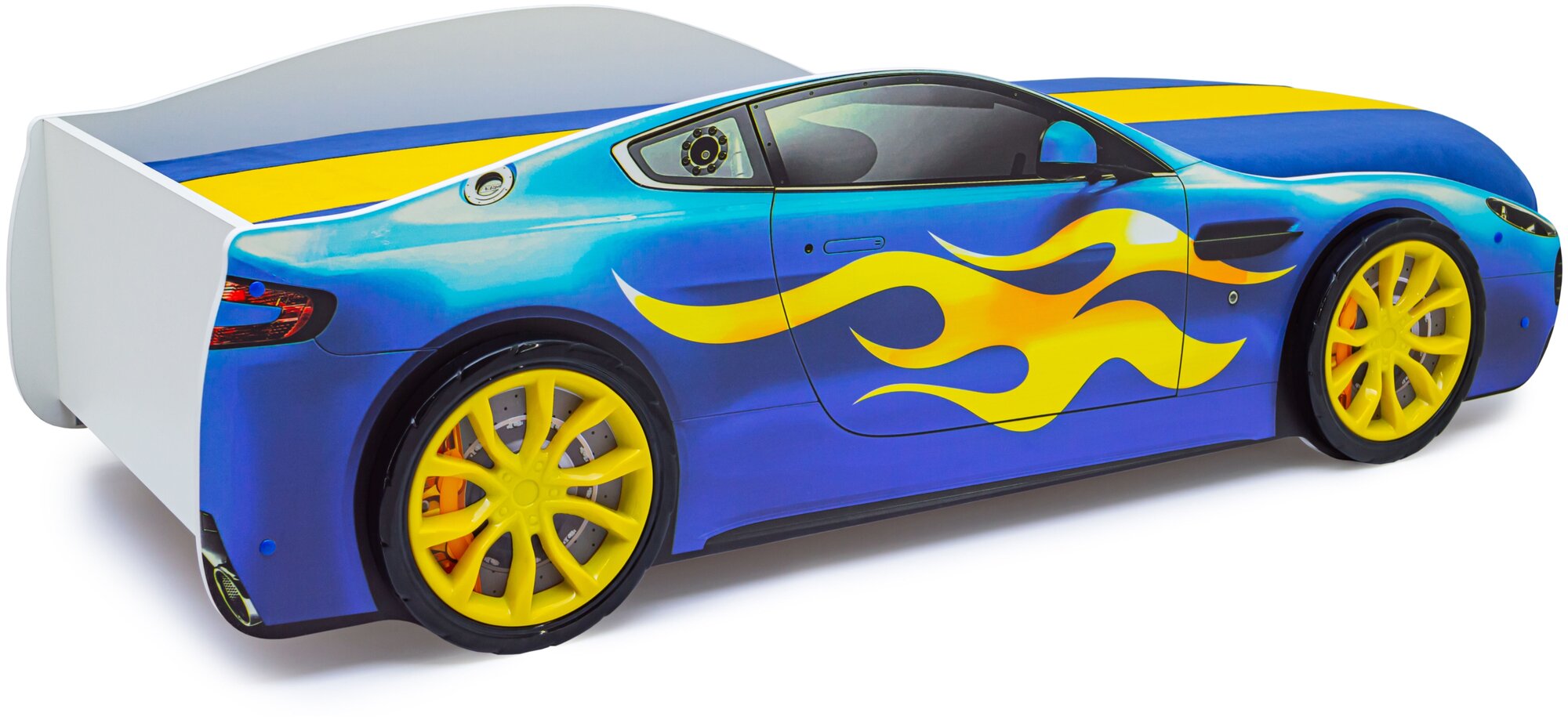 Детская кровать-машина Бельмарко "Бондмобиль желтый" с подъемным механизмом и матрасом