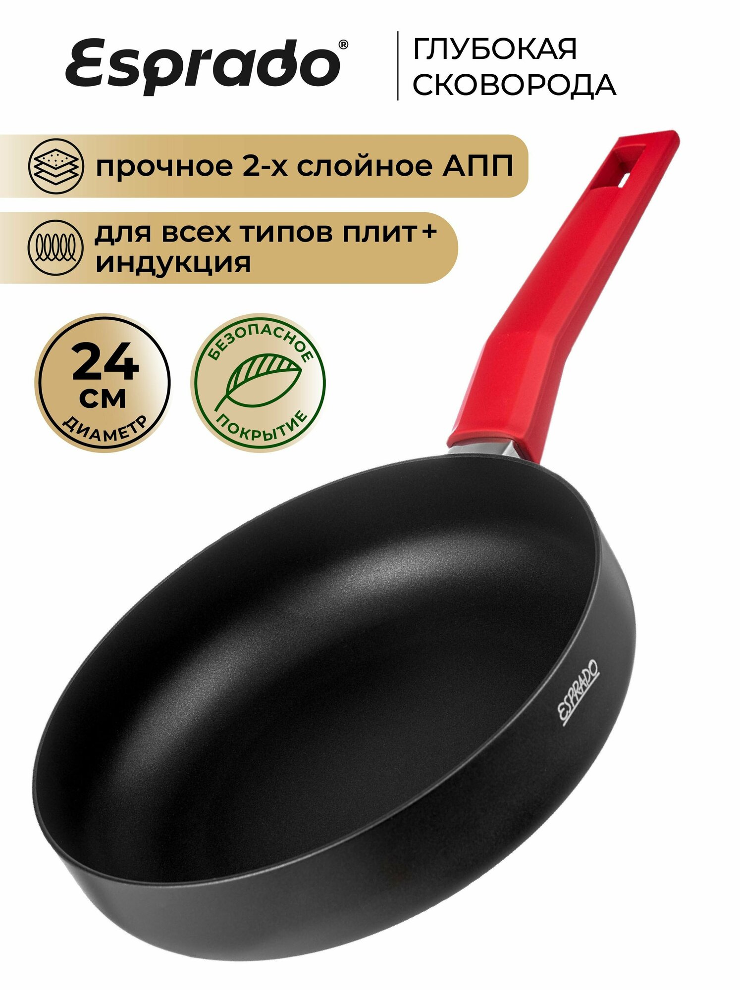 Сковорода Esprado Frontera из алюминия с антипригарным покрытием, индукция, 24 см