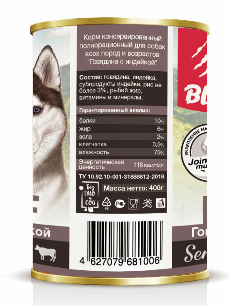 Блитц Консервы для собак Говядина и индейка, 400 г, 24шт
