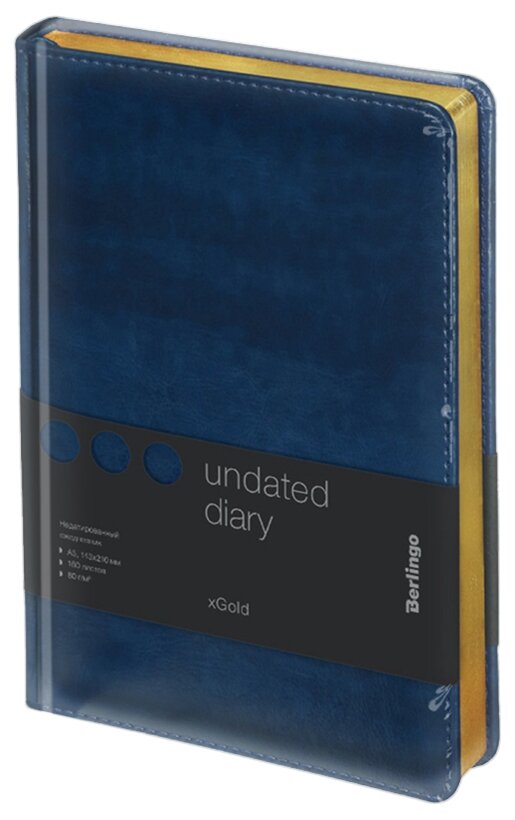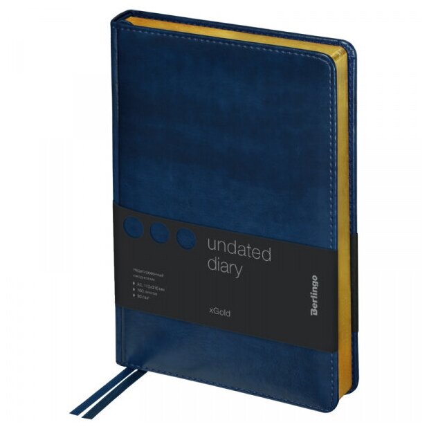 Ежедневник недатированный А5 160 листов, кожзам, Berlingo "xGold", золотой срез, синий