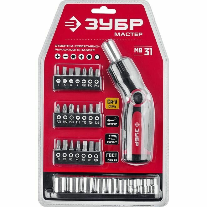 ЗУБР Универсал-31 набор: реверсивно-рычажная отвертка с насадками 31 шт (25161-H31)