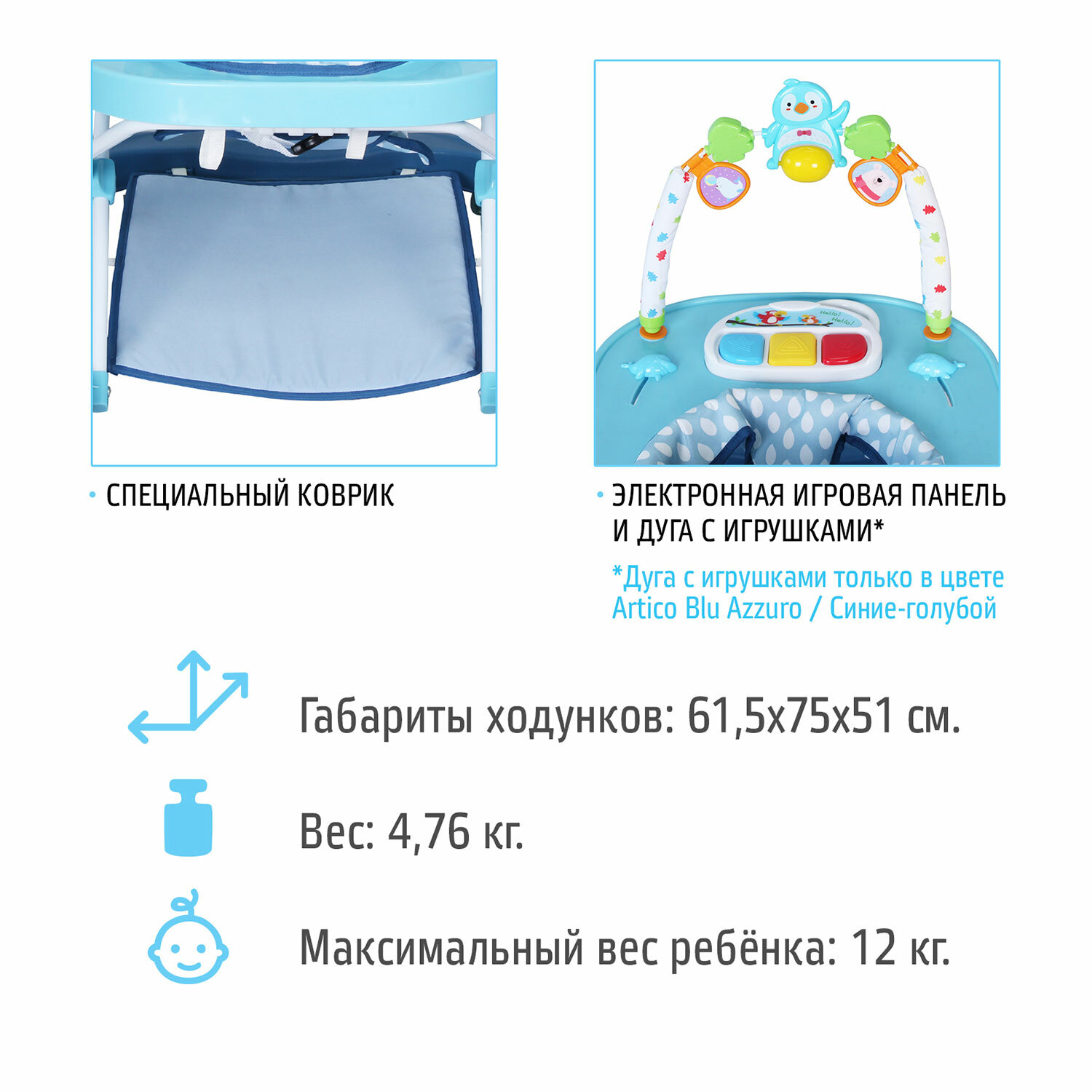 Ходунки детские Nuovita Avvio 2 в 1: ходунки, толкатель (Artico Blu Azzuro/Сине-голубой)
