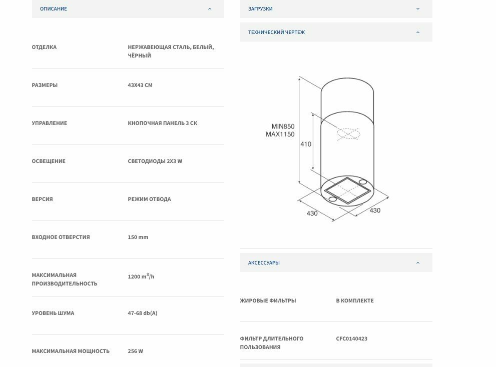 | Диаметр патрубка воздуховода | 150 мм |