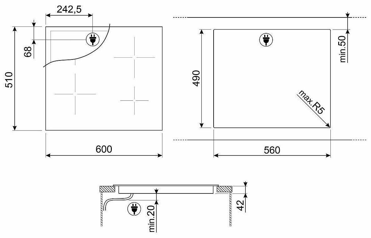 SMEG SE263TD1 Cтеклокерамическая варочная панель, 60 см, прямой край
