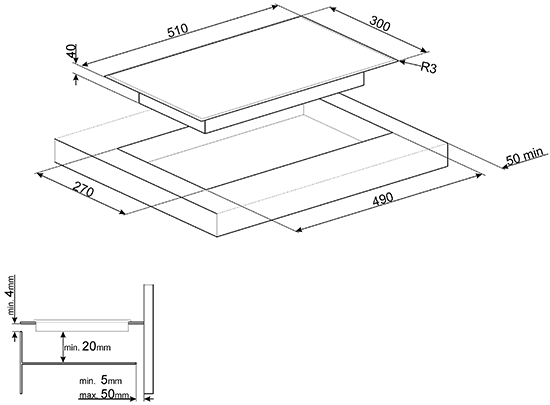 | Размеры конфорок | конфорка диаметром 14,8 см, конфорка диаметром 12,4 см, с круглой зоной расширения 18,4 см |