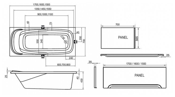 | Дополнительная информация | опции: шторка для ванны, фронтальная панель; литьевой акрил Lucite вертикального выдува; равномерная толщина материала по всей площади ванны; армирование стекловолокном |