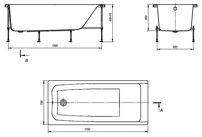 ART&MAX Акриловая ванна ART&MAX AM-218-1700-750 отдельностоящая