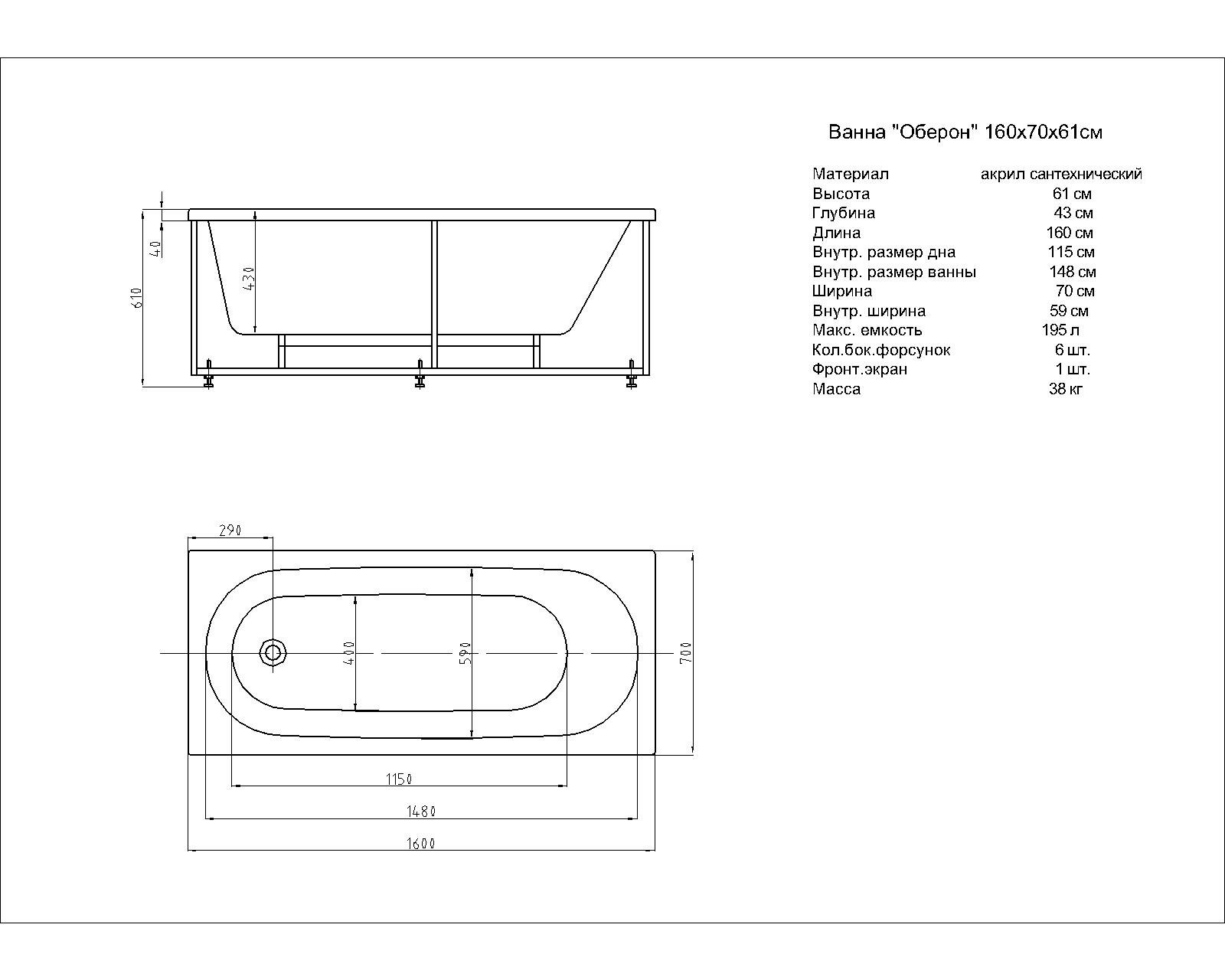 Ванна акриловая АКВАТЕК Оберон 160x70 OBR160-0000039