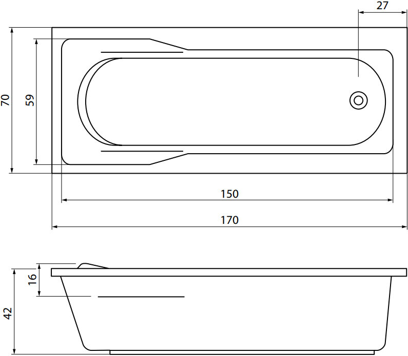 Акриловая ванна Cersanit Santana 170x70 см, ультра белый