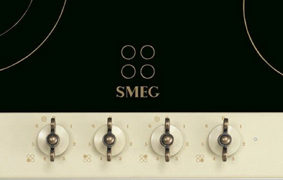 Варочная панель Smeg Электрическая, Coloniale,Стеклокерамическая 60 см, рамка кремовая, фурнитура латунная