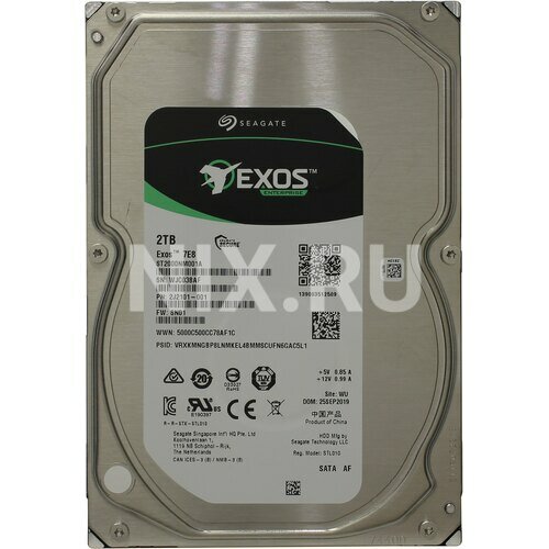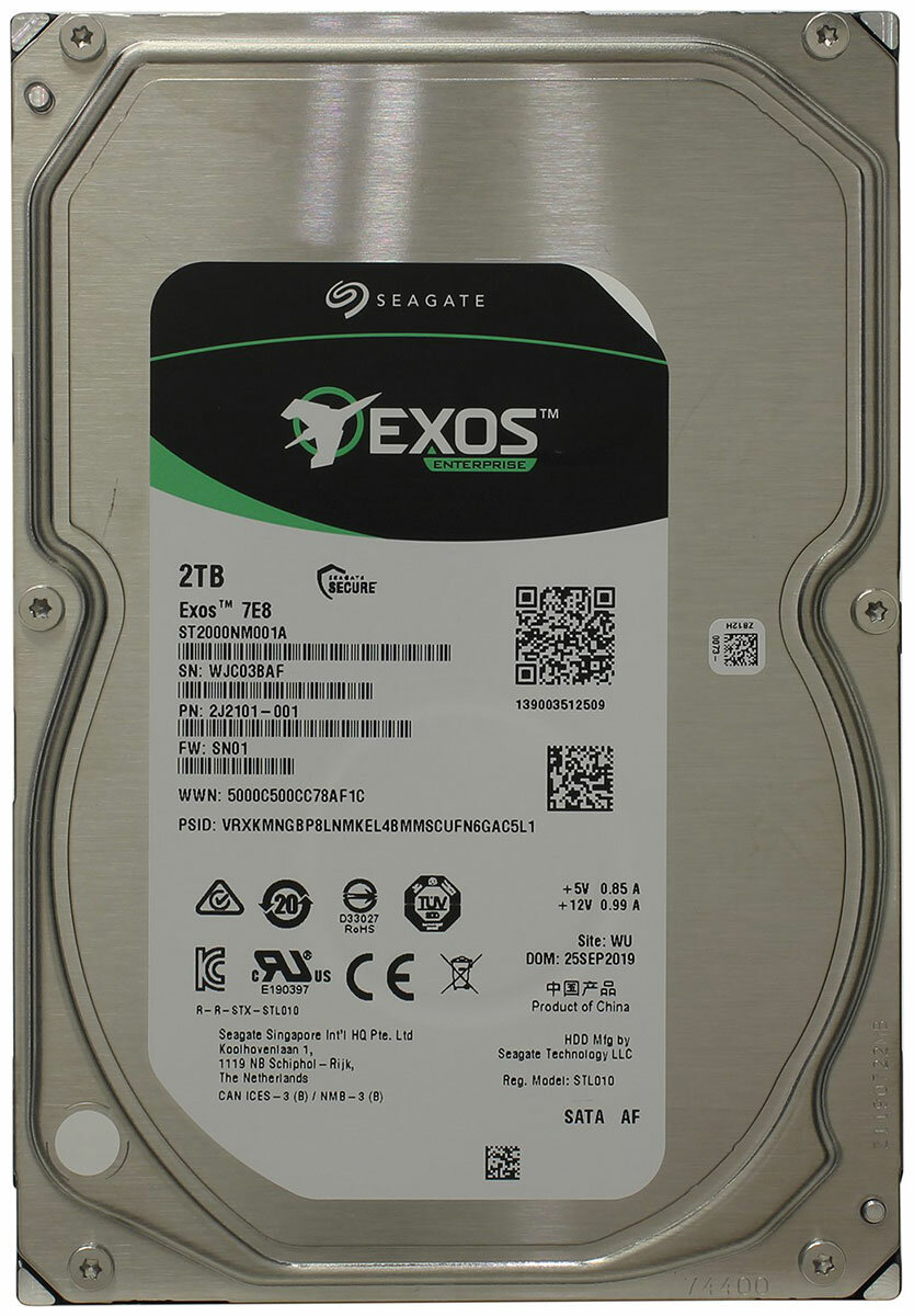 3.5" 2 ТБ Жесткий диск Seagate Exos 7E8 (ST2000NM001A) - SATA III, 6 Гбит/с, 7200 об/мин, кэш память - 256 МБ, RAID Edition