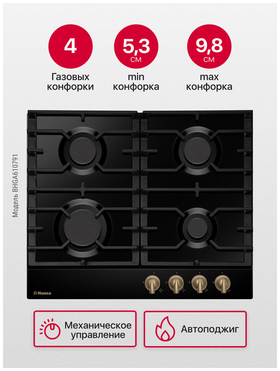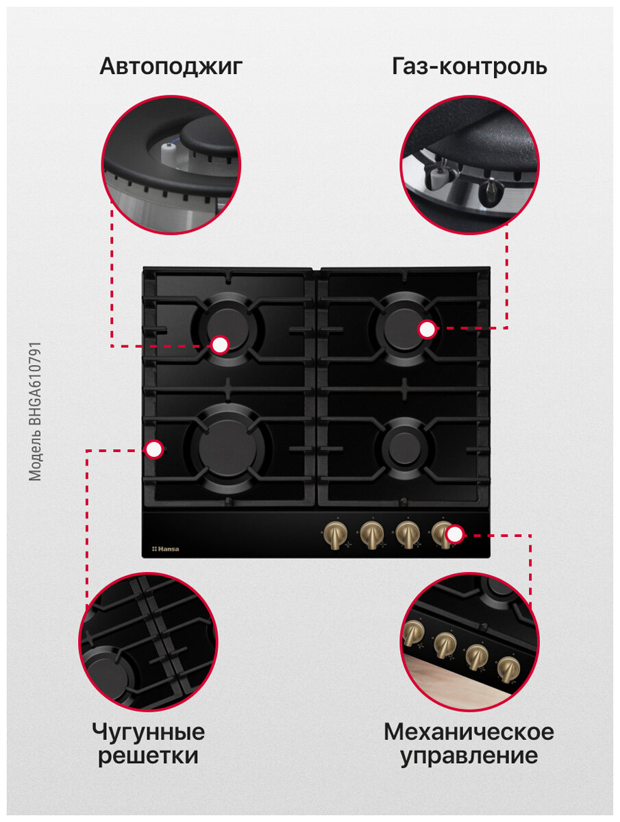 Встраиваемая газовая варочная панель Hansa BHGA610791 интересное:
