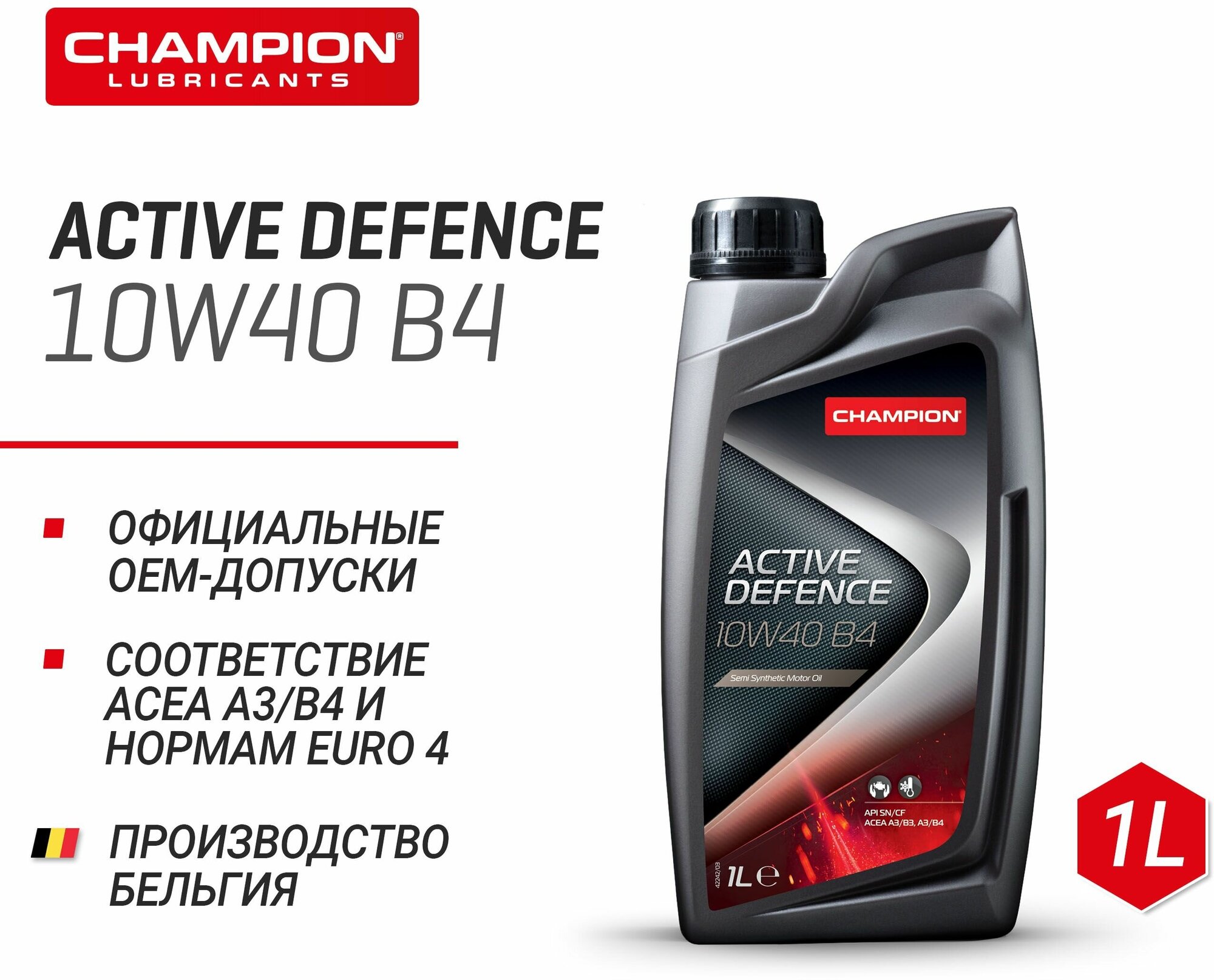 CHAMPION OIL Champion Active Defence 10w-40 B4, Acea: A3/B3-10 Asea: A3/B4-08, Api: Sl/Cf П/С (4л)