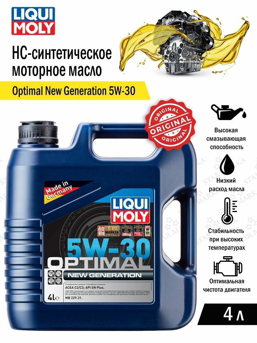 HC-синтетическое моторное масло LIQUI MOLY Optimal New Generation 5W-30, 4 л, 4 кг